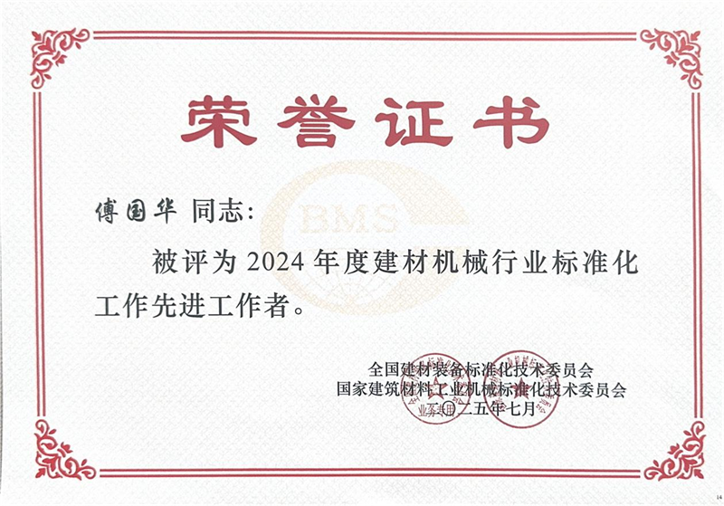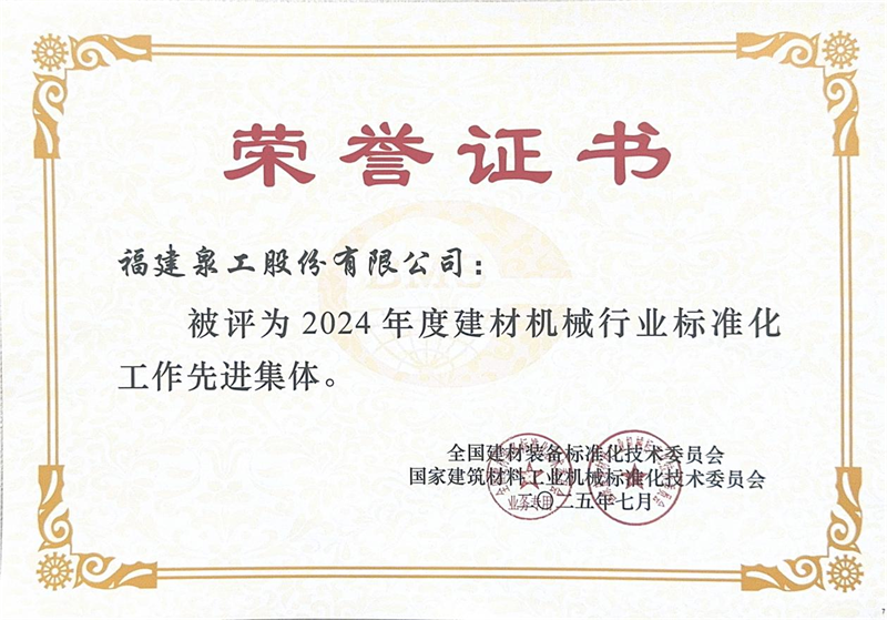 Aldi berean egindako goraipamen saioan, Quangong Machinery Co.,Ltd-i "2024an Eraikuntzako Materialen Makineriaren Industrian Estandarizazio Laneko Kolektibo Aurreratua" titulua eman zioten, eta Fu Guohua konpainiako zuzendari nagusiari "Eraikuntzako Materialen Makineriaren Industriako Normalizazio Laneko Langile Aurreratua 2024" titulua eman zioten.